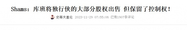 值得一提的是,2023年11月29日,Shams报道,库班将独行侠的大部分股权出售,卖给了米丽娅姆-阿德尔森以及阿德尔森家族,估值大约在35亿美元。