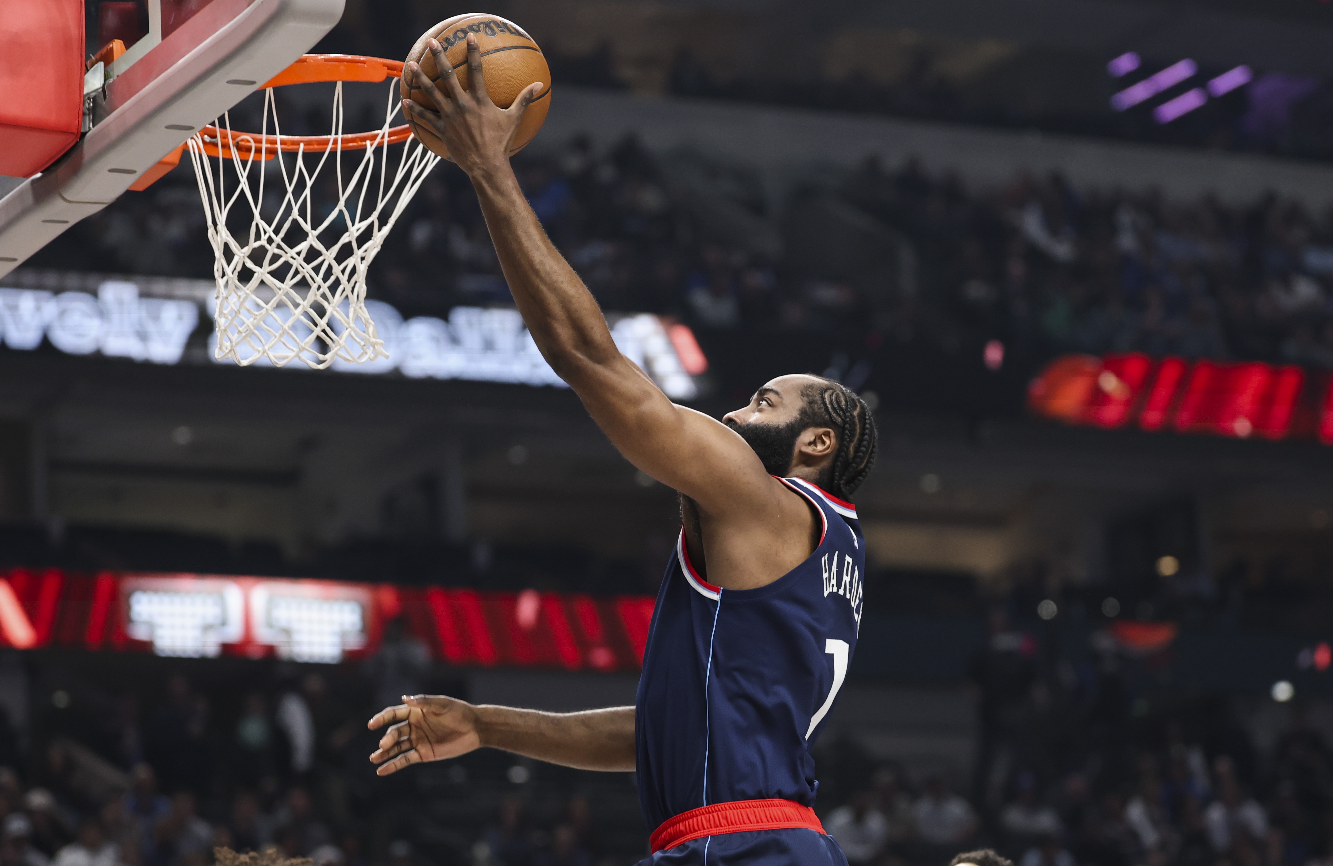 2025年3月6日,快船在主场123比115击败活塞。哈登出战38分钟27秒,24投14中,三分13投6中,罚球20罚16中,砍下50分4篮板5助攻。
