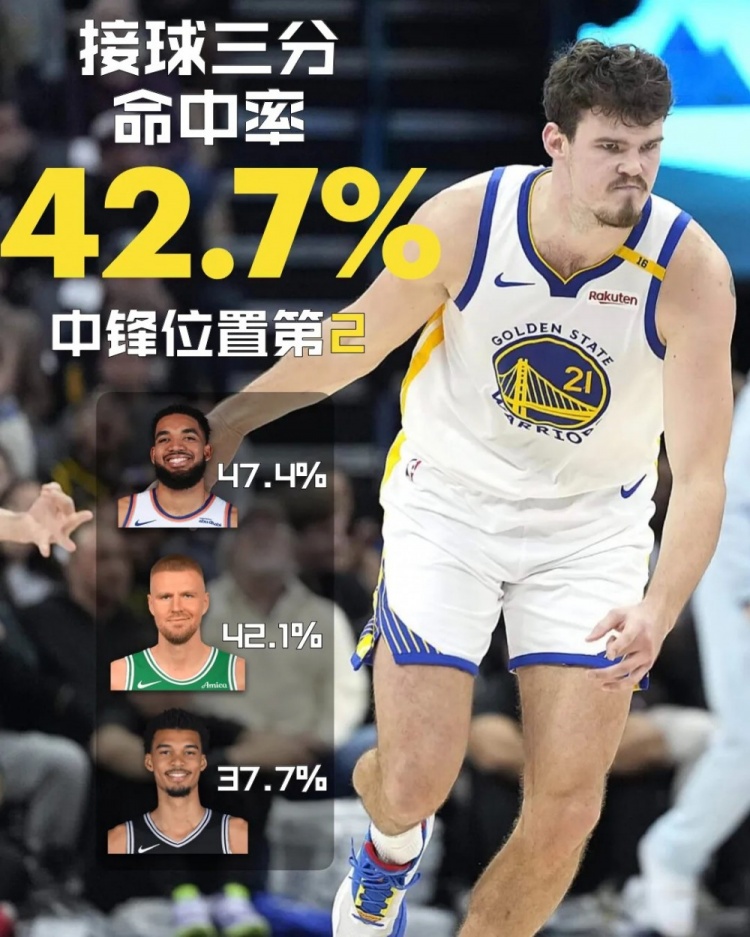 而当年为什么勇士队和唐斯传过绯闻?无非就是这样的空间型内线,能让“库有引力”最大化。