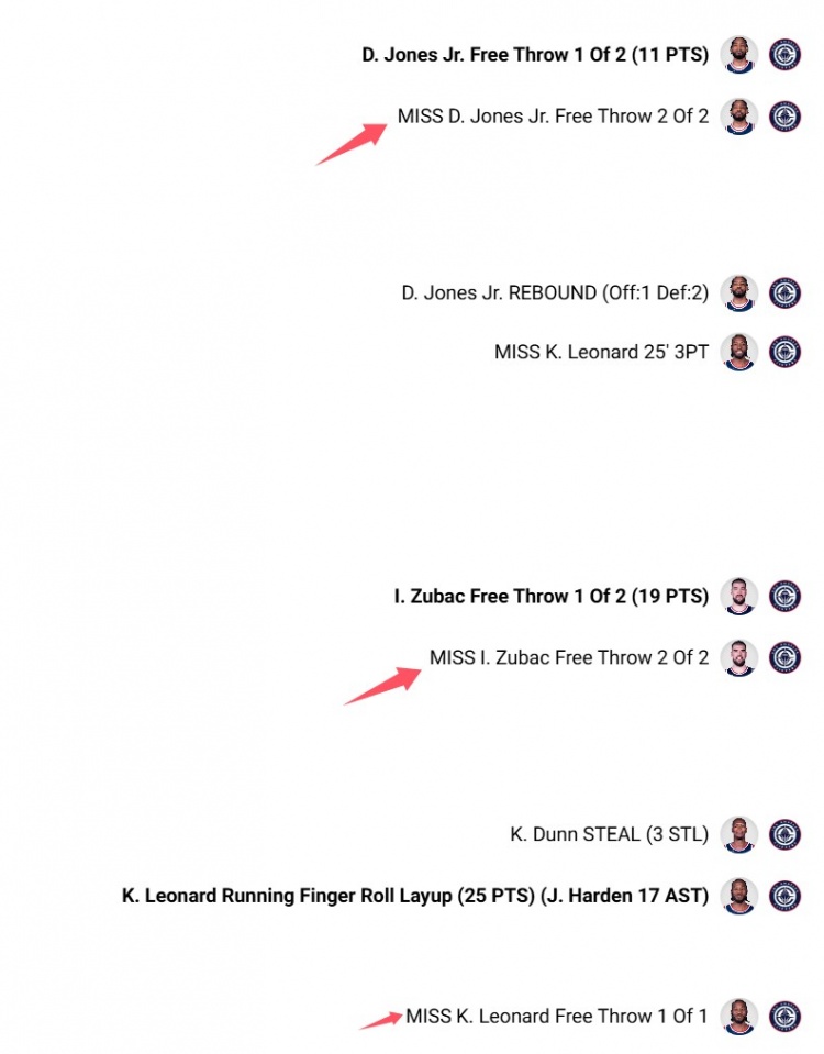 决胜时刻!祖巴茨、琼斯、小卡90秒内丢3罚球 全场快船才丢4个