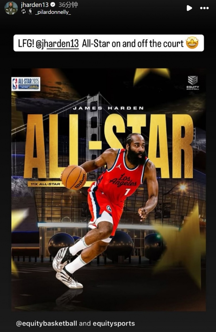 时隔两年再进全明星!哈登连续转发报道贺信 已18条且还在继续 1月31日讯 NBA官方今日公布了2025旧金山全明星的替补阵容,哈登入选西部全明星替补。随后,哈登在INS连续转发官方报道和好友贺信,截至目前已经连发了18条,且还在继续。 2025/01/31