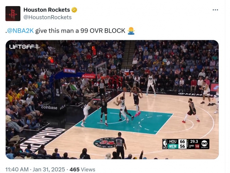 禁区守护者!火箭官方致2K官方:给阿门99分的盖帽值吧 1月31日讯 NBA常规赛,NBA常规赛,火箭半场66-56领先灰熊。半场比赛,阿门-汤普森攻防两端均表现出色。他出战19分钟,投篮8中4,罚球8中6,砍下14分4篮板2助攻1抢断3盖帽,正负值+10 2025/01/31