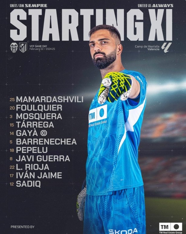 25-马马达什维利、20-福尔奎尔、3-莫斯克拉、15-塔雷加、14-加亚、5-巴伦内切亚、18-佩佩鲁、8-哈维-格拉、22-里奥亚、17-伊万-海梅、12-萨迪克