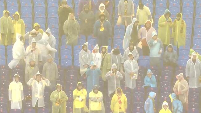 青岛大雨瓢泼!西海岸vs三镇比赛因天气原因推迟15分钟