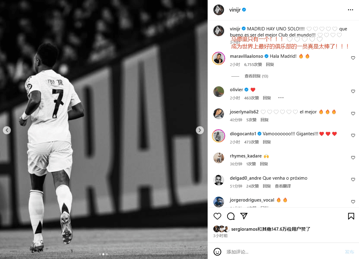 赛后相当活跃!维尼修斯赛后连更4条社媒:庆祝晋级&嘲讽马竞