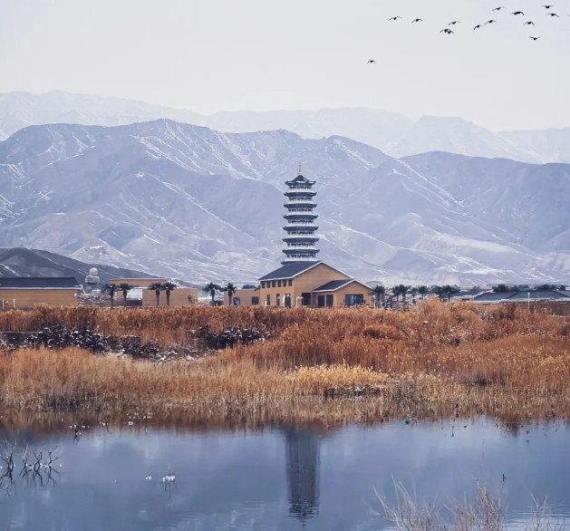 月亮泊戈壁湿地温泉旅游度假区位于新疆天山南麓,阿克苏市西南部,阿依库勒镇老子新村地界,阿克苏“1+7+N”商贸文旅合作区范围内,南邻314国道,距阿克苏市区约40公里,占地面积100平方公里。景区内有天地塔、雅丹峡谷、戈壁烽火台、湿地野生动物保护区和五口天然泉眼等景观,配套建设有温泉度假酒店、武姬酒馆、民宿等服务设施,因其地下温泉水中富含硫磺等矿物质成分,经常在温泉中洗泡可以治疗和改善皮肤疾病,深受当地居民的喜爱,是一处集乡村旅游和休闲康养等为一体的综合性温泉养生度假景区。2021年11月被评定为国家3A级旅游景区。本景区以“戈壁湿地温泉”为核心特色,提供温泉康养、生态观光和文化体验三大核心业务。景区内的天然硫磺温泉常年保持在40℃左右,富含硫、锂、氟等多种矿物质,具有显著的养生疗愈功效。温泉区结合足疗、玉疗、沙疗等项目,为游客提供多样化的健康体验,成为放松身心的理想之地。景区内分布着戈壁湖泊、湿地和芦苇荡等自然景观,形成了独特的生态风貌。湿地是候鸟迁徙的重要栖息地,每年春秋季节,大雁、天鹅等珍稀鸟类在此栖息,吸引了众多摄影爱好者和生态旅游者。戈壁与湿地交相辉映,夕阳下的月亮泊湖面波光粼粼,被誉为“人间净土”,为游客提供了绝佳的观光体验。