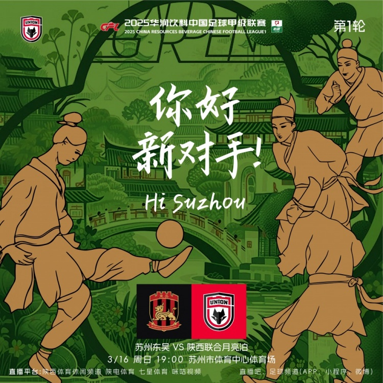 3月14日讯 3月16日19点中甲首轮,陕西联合将在客场对阵苏州东吴,赛前陕西联合发布了本场比赛的创意海报。