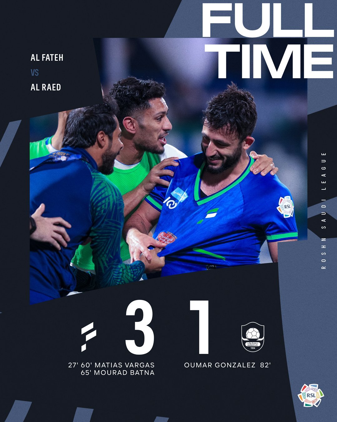 沙特联赛,哈萨征服主场3-1击败布赖代合作,28岁的上海海港旧将马蒂亚斯-巴尔加斯梅开二度,加盟球队后一共在联赛出场了11次,打进2球助攻3次。效力海港期间,巴尔加斯共出场85次,打进20球助攻32次,拿到了两次中超冠军。