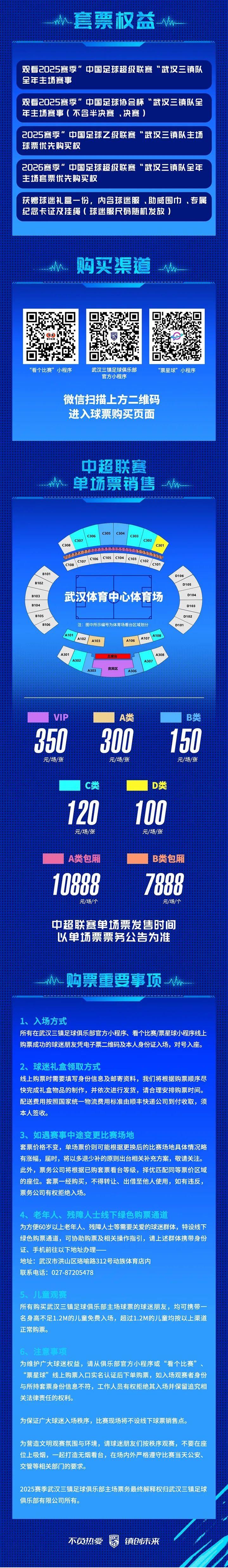 迎接主场,登上看台,我们一起为武汉、为三镇而战!主场票务详情请查看下图:
