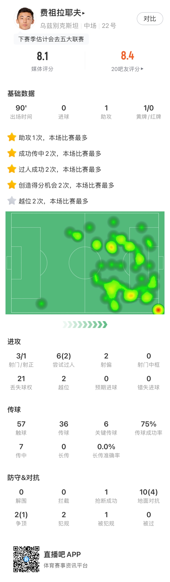 下一站五大联赛?乌兹21岁中场费祖拉耶夫1v6挑传助攻,身价800万