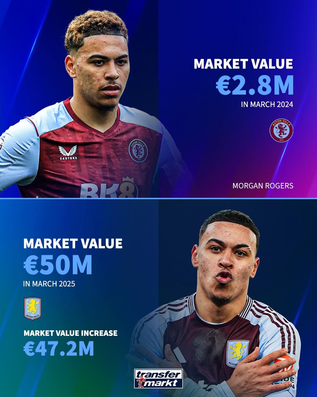 英超球员过去1年身价涨幅:帕尔默暴涨8500万欧 马尔穆什涨6000万