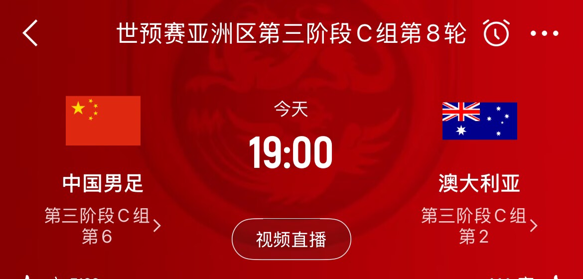 国足今晚将主场迎战澳大利亚,本场若输给澳大利亚,将提前2轮无缘前二。
