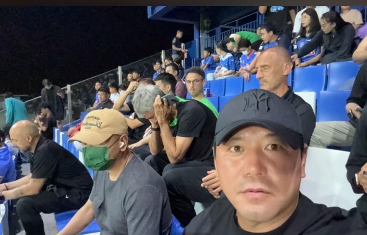 2月10日讯 北京国安目前正在泰国进行冬训,今天国安领队隋东亮晒出了球队教练组前往泰超现场观赛的照片。